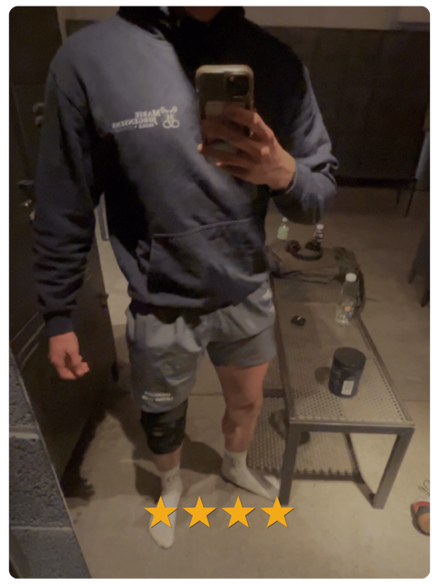 "M fits fairly well, but a bit tight when you get down into a squat. So I could have gone with an L too"